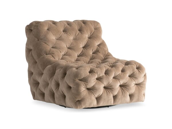 Relaxed sophistication makes a statement for this plush swivel chair featuring deep diamond tufting.