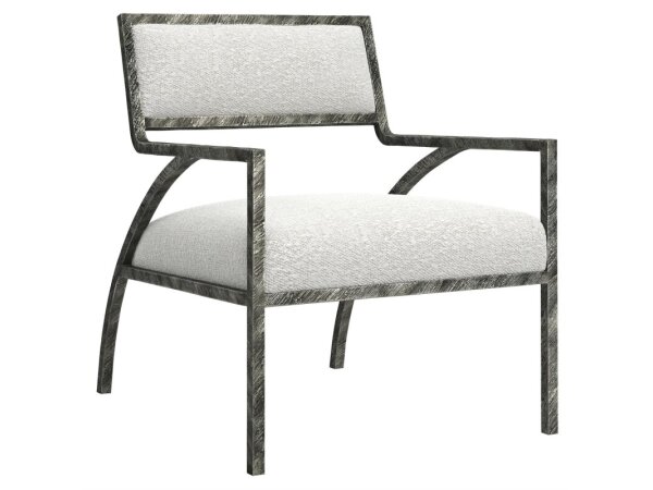 Leading the design of this sophisticated chair, a deeply textured black iron frame features clean modern lines and angles.