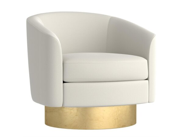 This elegant swivel chair features richly cushioned seating and a swivel base finished in gold leaf.
