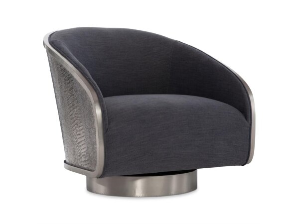 This swivel chair offers a streamlined design in German Silver embossed with a croc pattern.