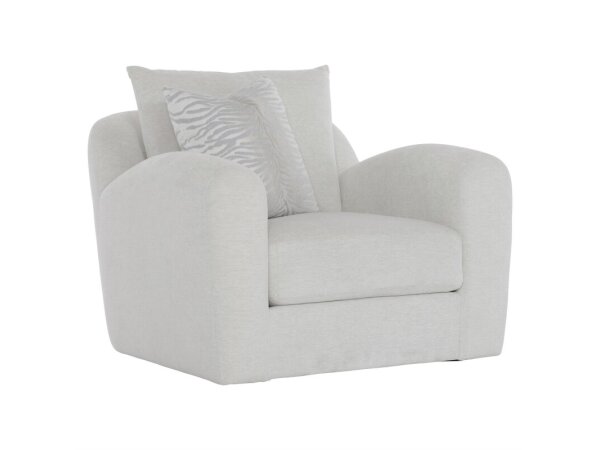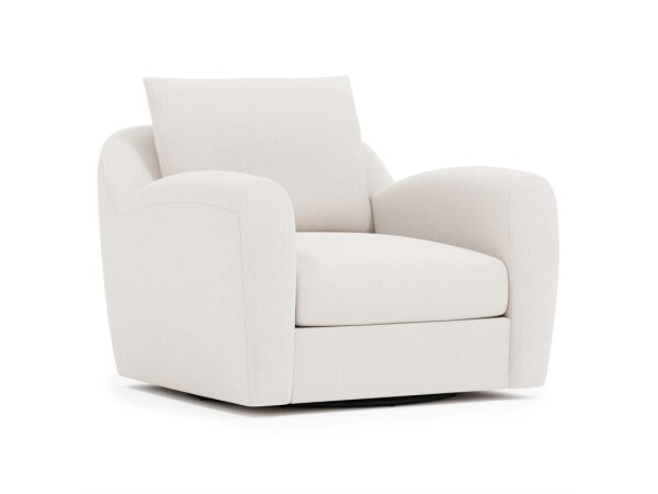 Generous shaping creates a compelling comfort story on this deep-seated swivel chair.