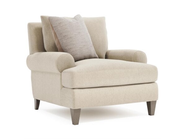 A casual silhouette combines with gracious scale and relaxed tailoring in this sophisticated, transitional chair.