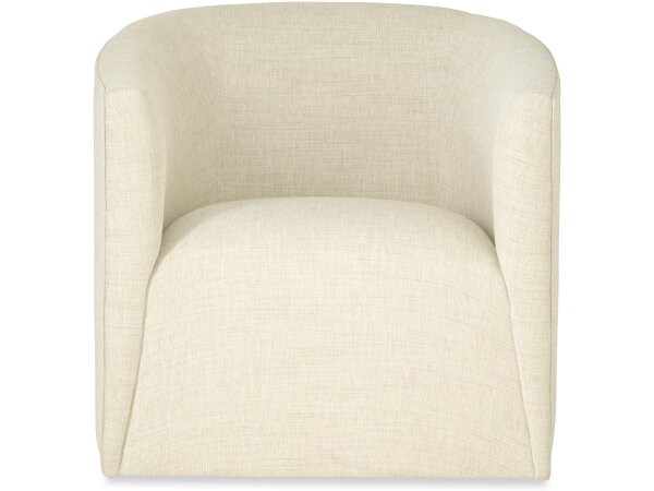 Jaw-dropping style meets perfect comfort in this exquisite modern swivel chair. Sloping arms and a waterfall seat create a stunning