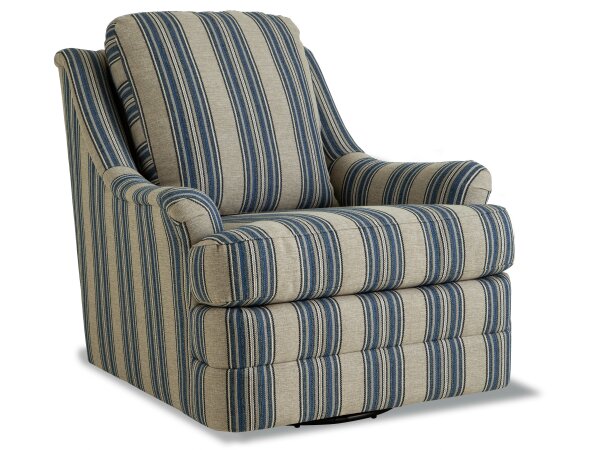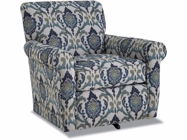 A simple, casual style that’s big on comfort, this swivel glider features slender shaping in the arms and a curved