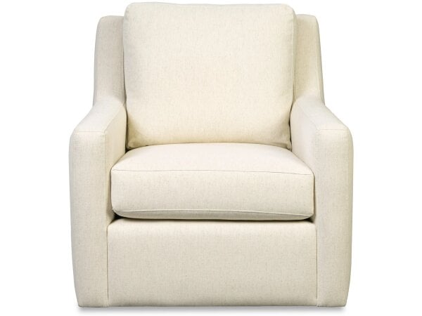 A modern swivel chair with a fresh design and amazing comfort! It features track arms and a loose back pillow.