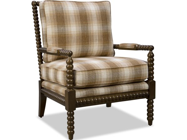 This classic carved wooden spool chair from the Paula Deen Home collection feels fresh and inviting. Featuring upholstered arm rests,
