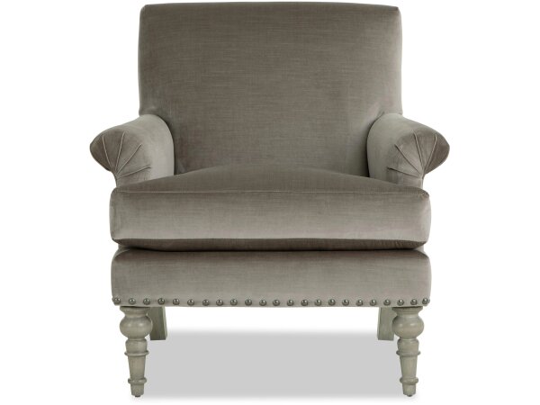 A classic comfy accent chair with handsome details such as pleated arms, curved front rail, nail head trim and tall
