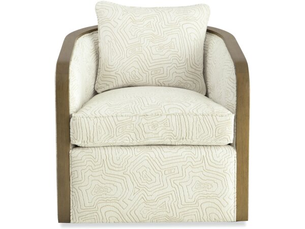 A modern swivel chair is a versatile, functional piece in any space, but this one with stunning wood trim detailing