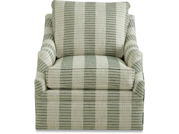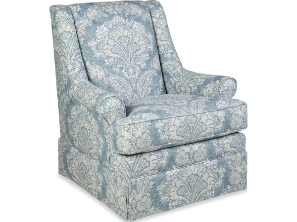 Understated and elegant, this swivel chair is beauty defined. It features slender sloping arms that taper from back to front