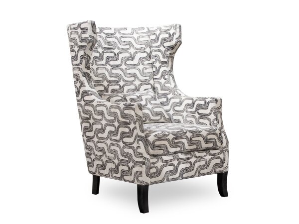 Tall-back power recliner with contemporary track arms, tapered wood legs, and fabric upholstery. Inside-arm control reclines smoothly for personalized comfort in a modestly scaled accent chair.