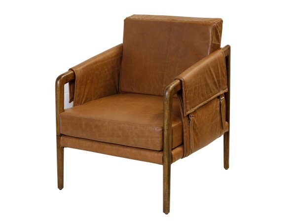 Leather accent chair with an open silhouette and a contoured solid birch frame for a light, retro look. Semi-aniline top grain leather provides tempered comfort with Scandinavian-inspired style.