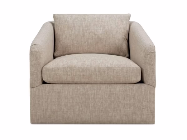 The Florence Swivel Chair features a cloud down cushion and a single back pillow for enhanced comfort. Its swivel base provides flexibility and ease of movement in your living space.