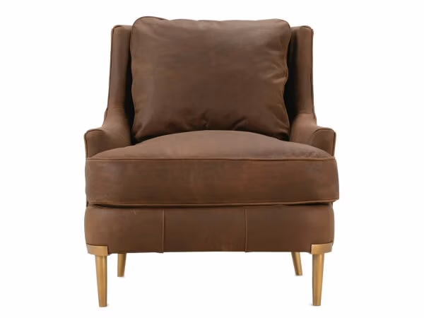Leather swivel accent chair with thin track arms, padded back, and a boxed, welted seat for everyday comfort. Compact 30 in. width suits living rooms, nurseries, or office nooks.