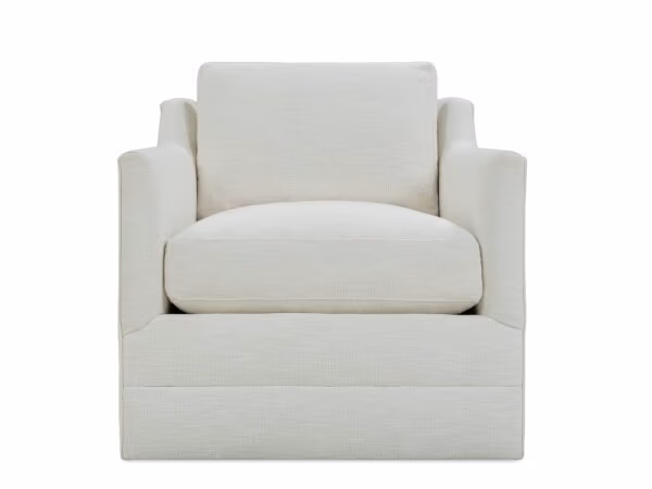 The Madeline Swivel Chair offers a Cloud Down cushion and a single back pillow for supportive comfort. Its swivel base provides easy movement, making it a versatile seating option.