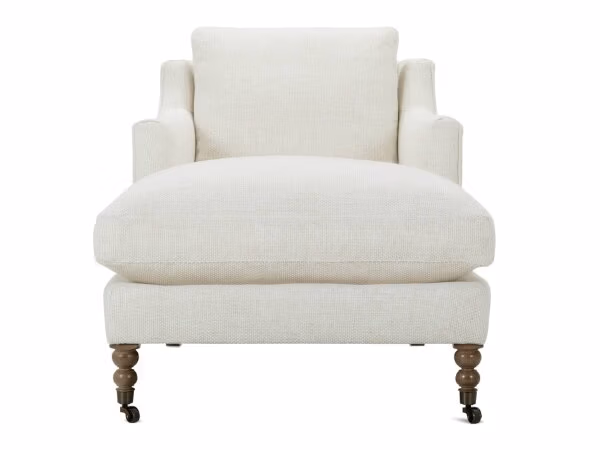 The Madeline Chaise Chair combines a long seat depth with a Cloud Down cushion for a comfortable lounging experience. It includes a single back pillow and cushion for supportive seating.