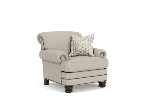 The Penelope Chair features a single Cloud Down cushion and one back pillow for comfort. This accent chair is designed for supportive seating in living or lounge spaces.
