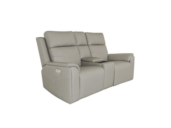 Clive Peppercorn Fabric Power Reclining Loveseat with Console, Power Headrests & Lumbar
