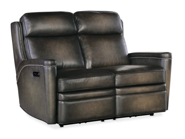 56" (142.2 cm) SS Living Room Hamilton Power Loveseat w/Power Headrest highlighted with Leather design elements, bringing a subtle decorative character.