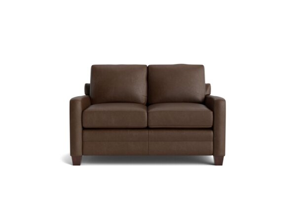 Customizable roll-arm loveseat for smaller spaces, with designer fabric choices, cushion comfort options, and tapered leg finishes. Removable back cushions simplify care.
