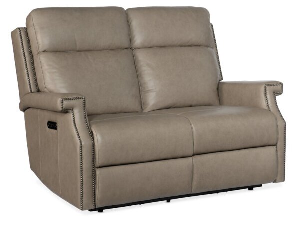 56" (142.2 cm) SS Living Room Hamilton Power Loveseat w/Power Headrest highlighted with Leather design elements, bringing a subtle decorative character.