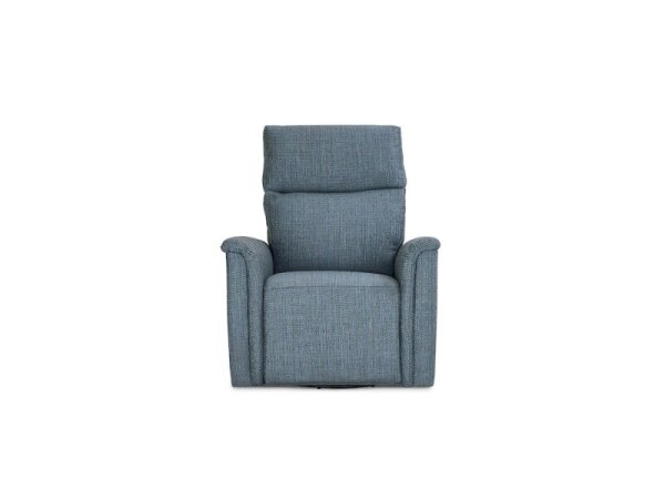 Power swivel glider recliner with a soft, sectioned back and padded arms. 270° rotation and customizable reclining with an outside-arm switch and USB port.