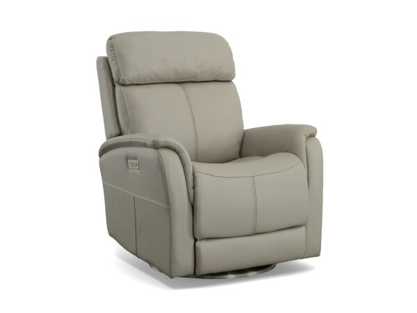 View Dove Leather Power Swivel Recliner with Power Headrest