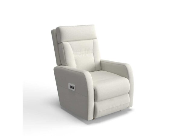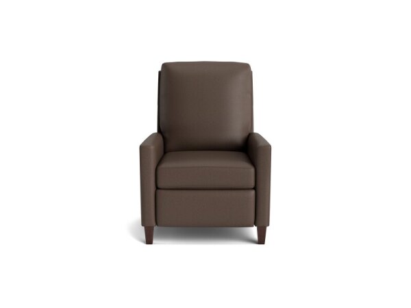 Leather manual push-back recliner with clean track arms and a semi-attached back, transforming to two positions. High-leg, modest-scale design brings tailored comfort to smaller spaces.