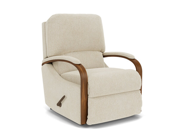 The Woodlawn recliner spotlights a beautifully curved Valencia-finished arm topped off with a soft upholstered arm cap. The comfort of