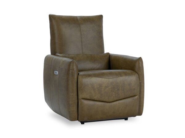 Upholstered in rich York Butternut leather, this triple power swivel glide recliner offers ultimate comfort with a powered headrest and lumbar support. It also features integrated USB-A and USB-C charging ports.