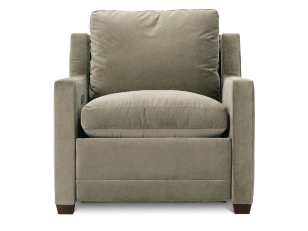 Leather zero-gravity power recliner with traditional nailhead trim for a tailored look. Offers a power-adjustable headrest and integrated USB-A/USB-C charging.