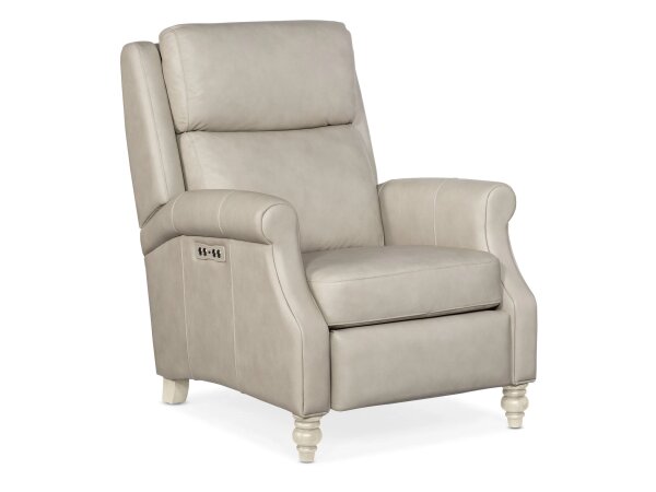 Top-grain leather zero-gravity power glider recliner with smooth glide and power headrest. Built-in USB charging and plush cushioning enhance everyday comfort.