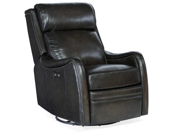 31" (78.7 cm) RC Living Room Steffen Swivel Power Recliner with Power Headrest enriched by Leather design elements, making it a distinctive interior accent.