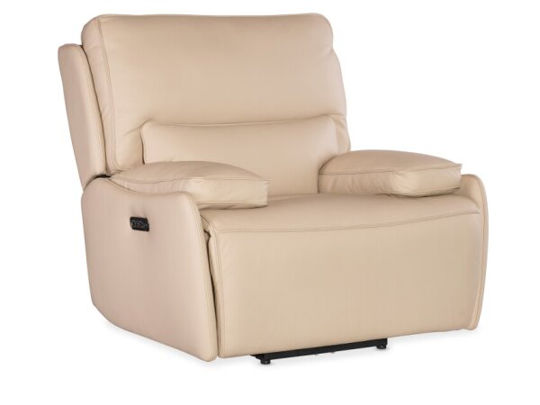 43 1/2" (110.5 cm) MS Living Room Montel Lay Flat Power Recliner with Power Headrest & Lumbar enriched by Leather design elements, making it a distinctive interior accent.