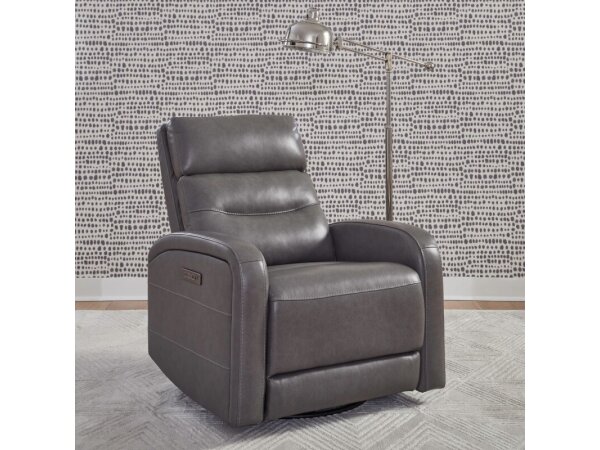 Finished in stylish York Charcoal leather, this triple power swivel glide recliner provides personalized comfort with a powered headrest and lumbar support. For convenience, it includes built-in USB-A and USB-C charging ports.