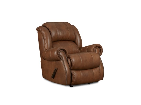 With its pillow top arms and tall, curved back featuring detailed channel-stitching, our Lancer Rocking Recliner delivers a large dose