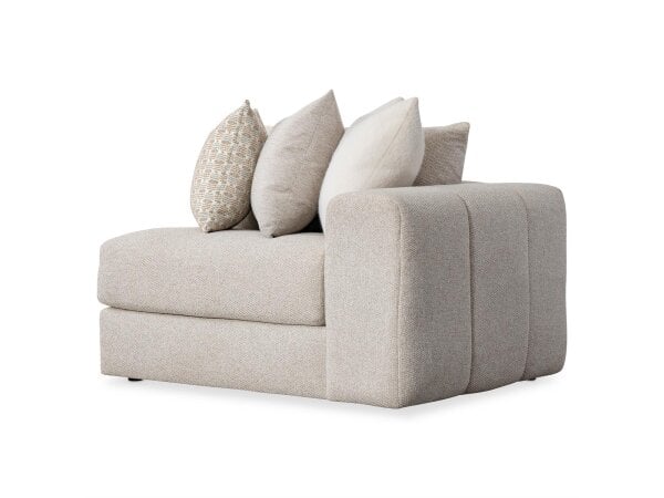 The Vista right arm chair is marked by a gently curved arm and stitched detailing that drapes over the side.
