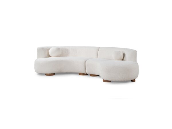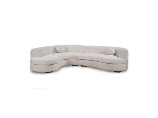 The Octavia Sectional in polyester fabric features a sleek crescent shape that brings a touch of contemporary elegance to any