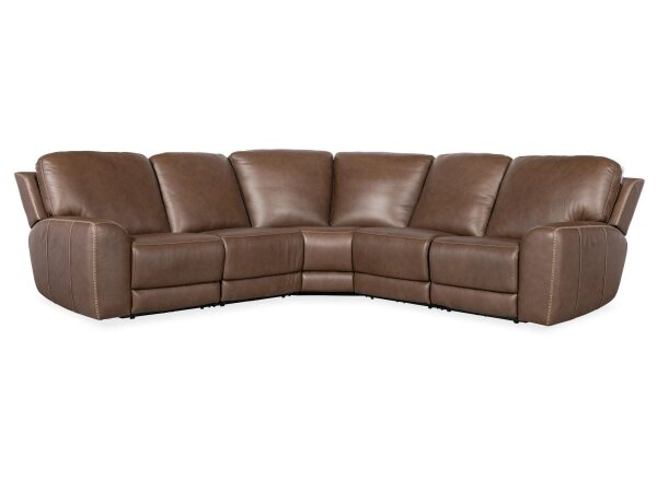 168 1/4" (427.4 cm) SS Living Room Savion Deux 6 Seat Sectional with Four Power Recliners and Seven Power Headrests, crafted with attention to detail and elevated through Leather design elements.