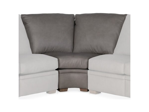 Transitional leather stationary sectional with Spring Down cushions and a semi-attached two-piece back for cushioned support. Engineered hardwood frame with eight-way hand-tied springs; standard Mahogany finish.