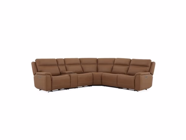 Sawyer Harvest Leather Power Reclining Sectional with Power Headrests & Lumbar