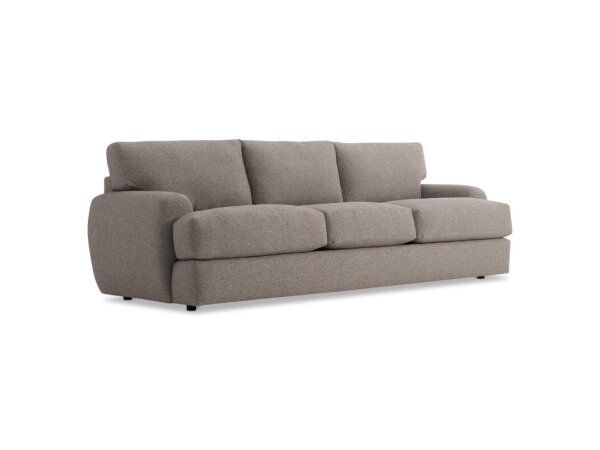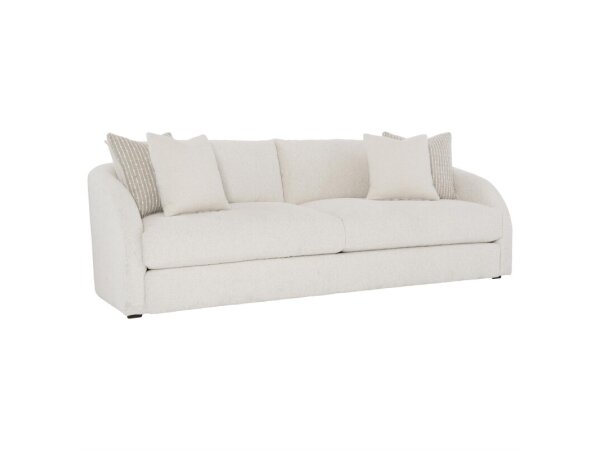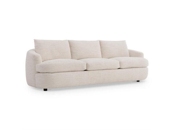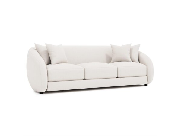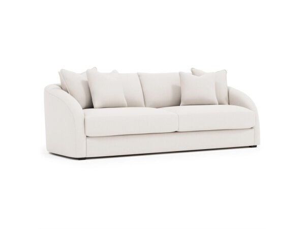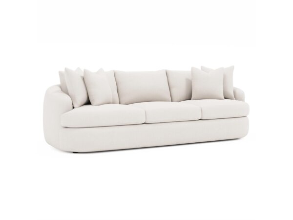 Rounded corners and padded arms craft an invitingly comfortable sofa.