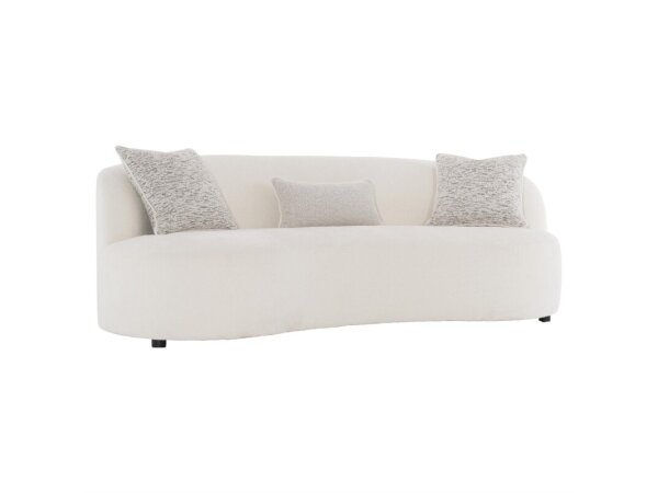 A sheltering back flows around to craft curved arms on this elegant modern sofa.