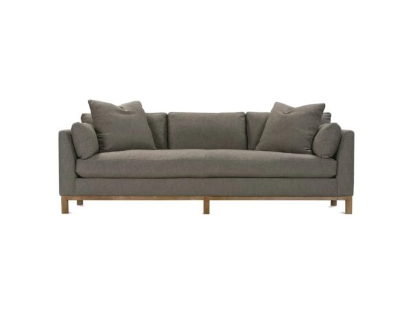 Traditional leather angled sofa with eight-way hand-tied springs and Spring Down cushions for comfort and durability. Built on a mortise-and-tenon hardwood frame with standard nailhead trim.