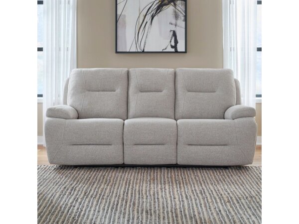 Large panel-arm sofa with padded, curving arms and removable back cushions. Artisan crafted in the USA in fabric upholstery with customizable size, cushion comfort, and detail options.