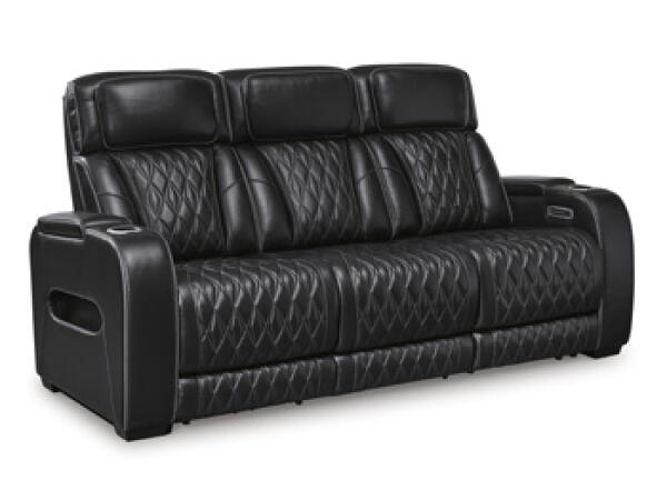 Focus on function. This practical power reclining sofa balances contemporary character and irresistible comfort. Its affordable, expertly matched leather and