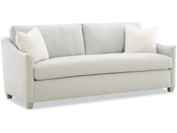Elegant and inviting, this bench-seat sofa features gently flared arms with a sculpted profile, adding a graceful touch to its