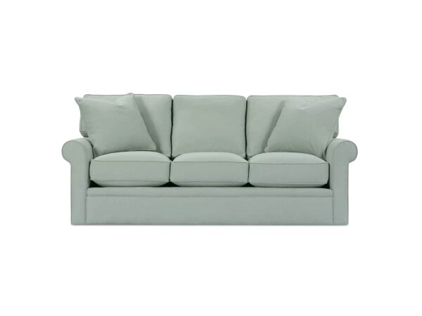 Timeless and refined, this three-seat sofa features elegant scrolled arms, tapered legs, and soft bed pillow-style loose backs for a