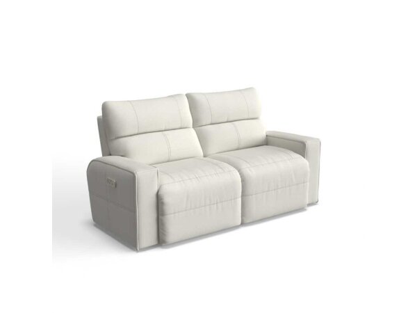 Transitional leather sofa with a stationary, two-cushion design. Hardwood frame, eight-way hand-tied springs, and Spring Down cushions; tapered legs and Mahogany finish.