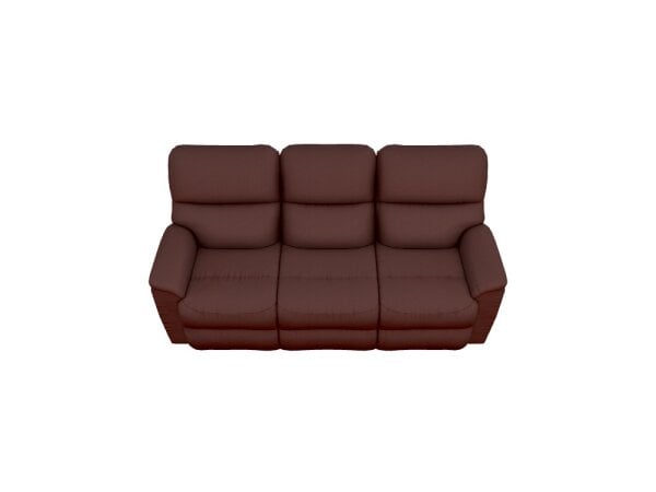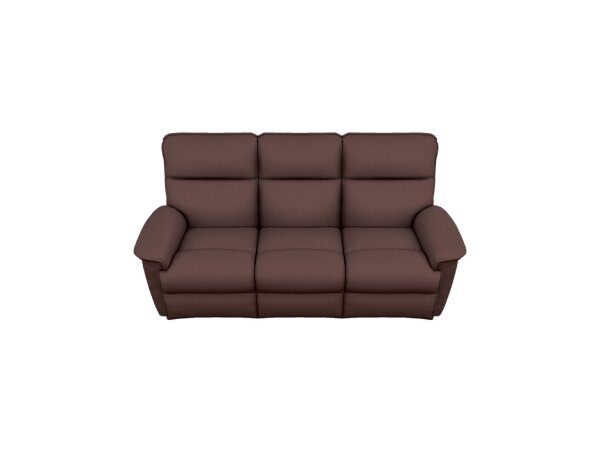 Transitional leather conversation sofa with a stationary, three-cushion design. Hardwood frame with eight-way hand-tied springs and Spring Down cushions; tapered legs and Mahogany finish.