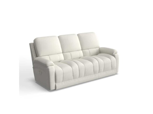 Small transitional leather sofa with a stationary, three-cushion layout. Laminated hardwood frame, eight-way hand-tied spring construction, and Spring Down cushions; tapered legs and Mahogany finish.